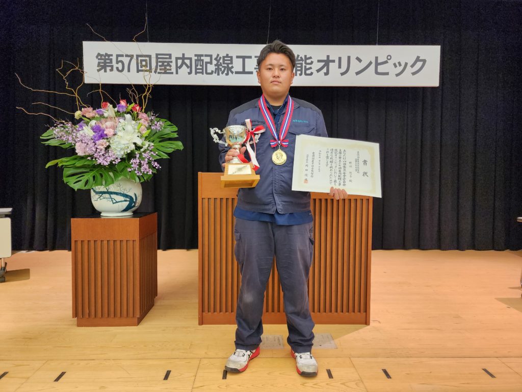 第57回 屋内配線工事技能オリンピック(四国大会) 越智電気工事(株) 野田悠斗さん優勝!